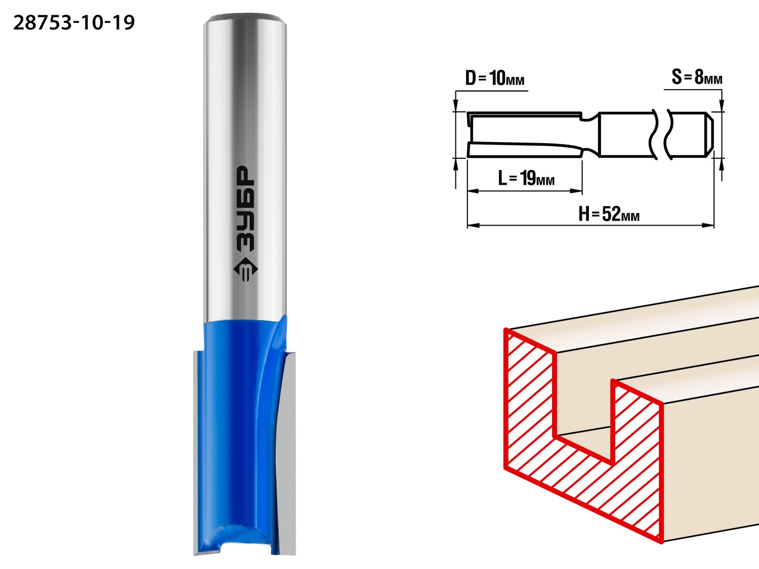 ОПИСАНИЕ ЗУБР 10 x 19 мм, хвостовик 8 мм