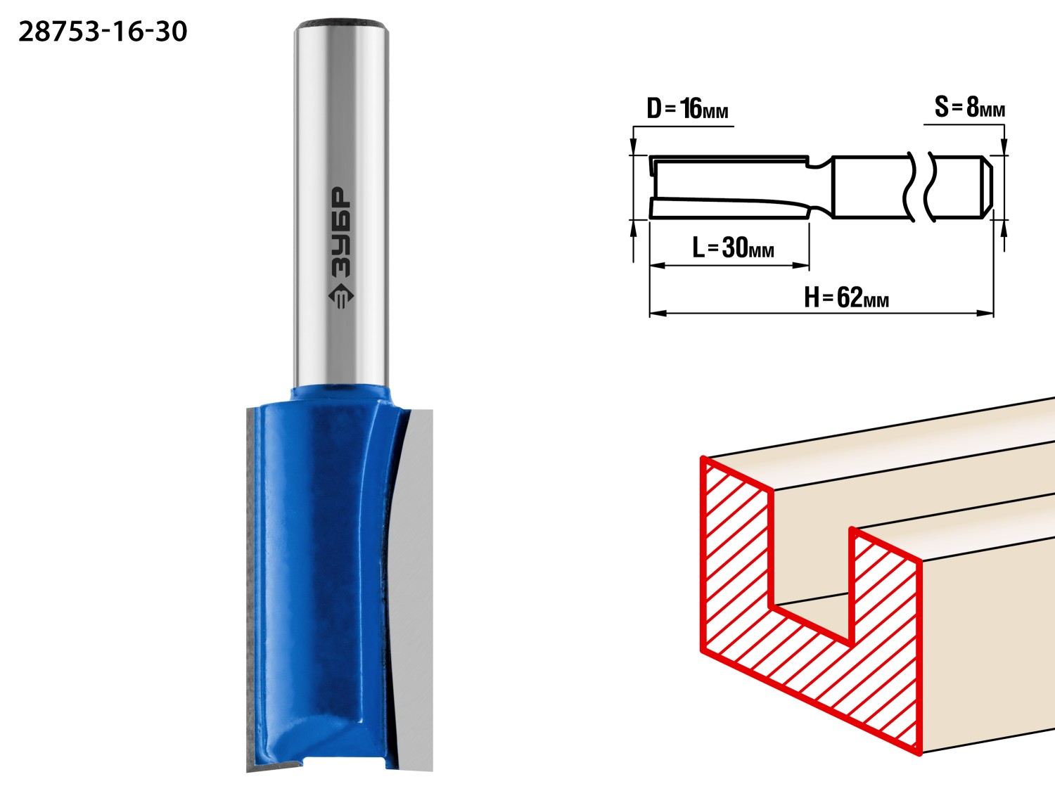 ОПИСАНИЕ ЗУБР 16 x 30 мм, хвостовик 8 мм