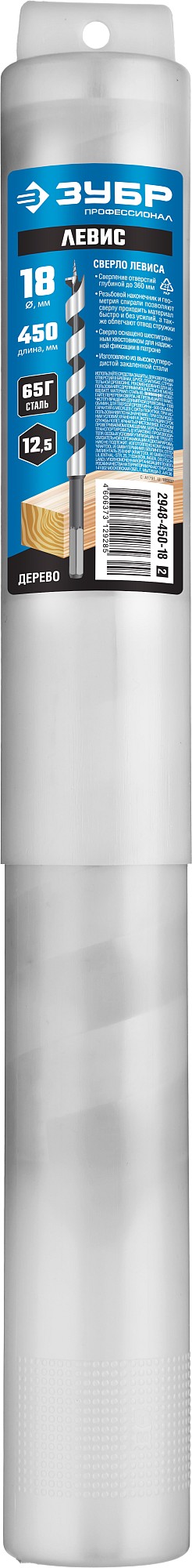 ТЕХНИЧЕСКИЕ ХАРАКТЕРИСТИКИ ЗУБР 18 x 450/360 мм, шестигранный хвостовик