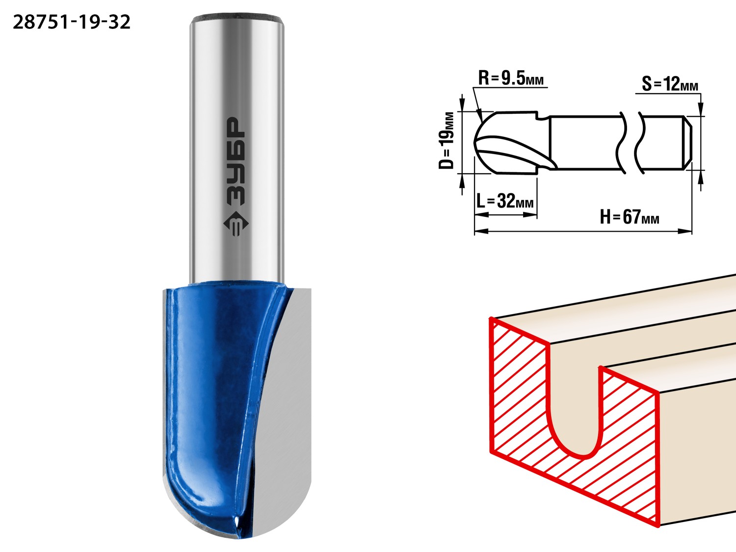 ОПИСАНИЕ ЗУБР 19 x 32 мм, радиус 9.5 мм