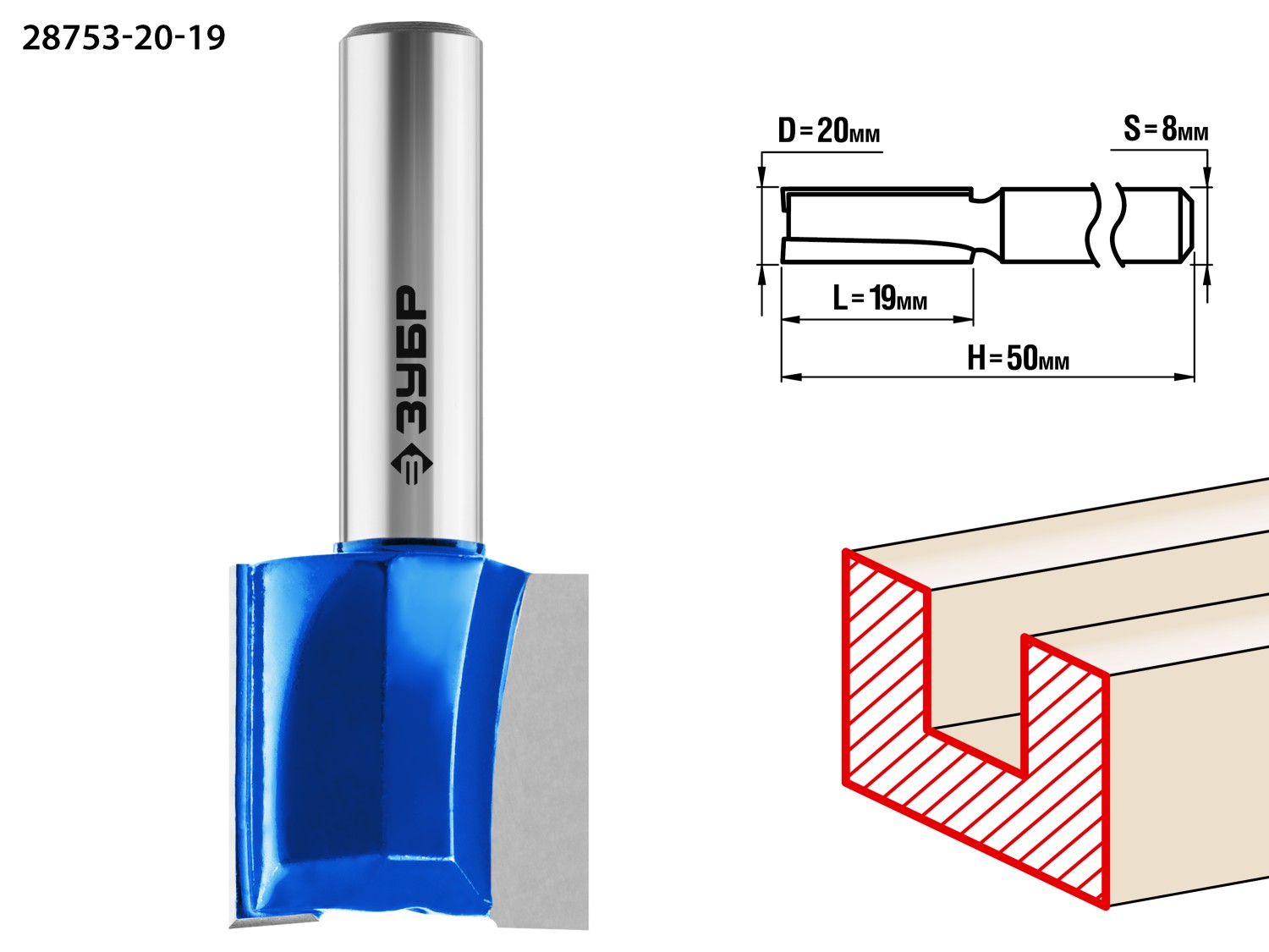 ОПИСАНИЕ ЗУБР 20 x 19 мм, хвостовик 8 мм