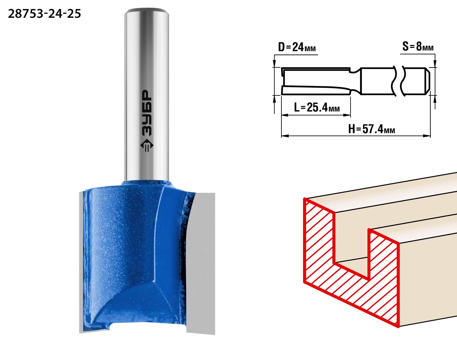 ОПИСАНИЕ ЗУБР 24 x 25 мм, хвостовик 8 мм