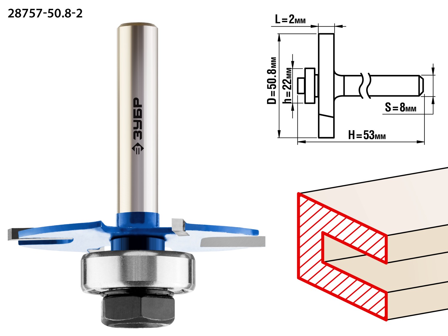 ОПИСАНИЕ ЗУБР 50.8 x 2 мм, хвостовик 8 мм