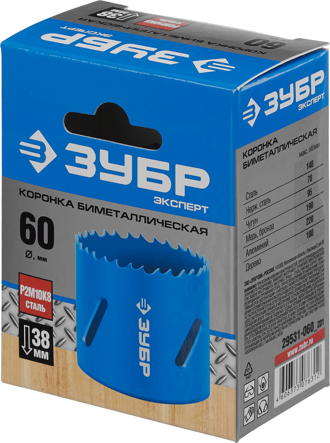 ТЕХНИЧЕСКИЕ ХАРАКТЕРИСТИКИ ЗУБР 60 мм, сталь Р6М5