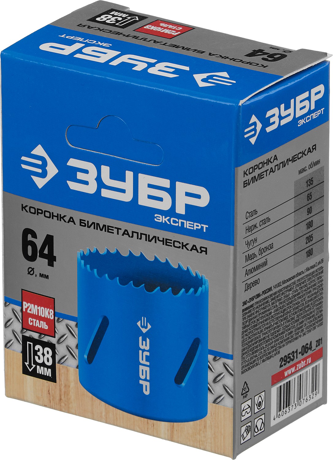 ТЕХНИЧЕСКИЕ ХАРАКТЕРИСТИКИ ЗУБР 64 мм, сталь Р6М5