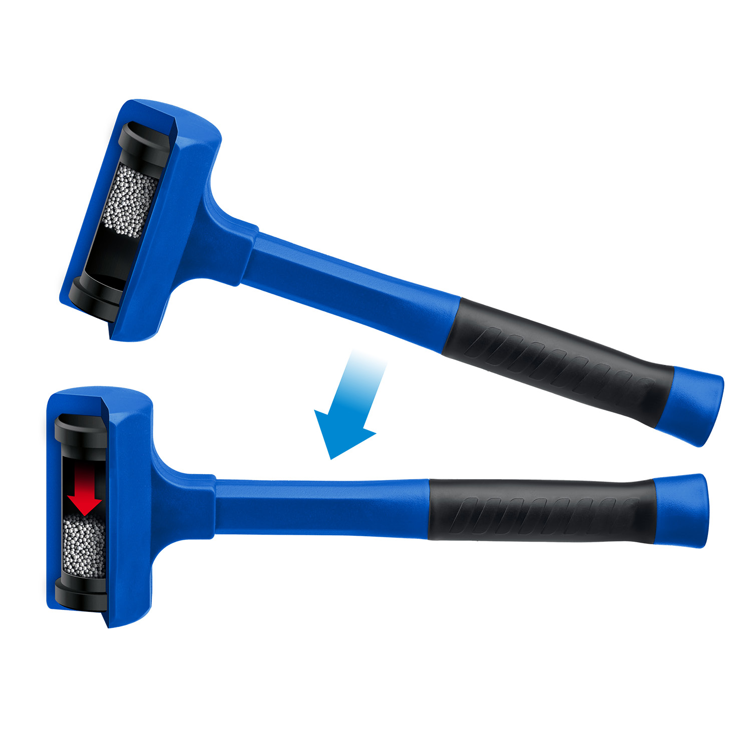 - Рабочая часть кувалды имеет пустотелую цельнолитую оболочку из ударопрочного пластика, облитого эластомером