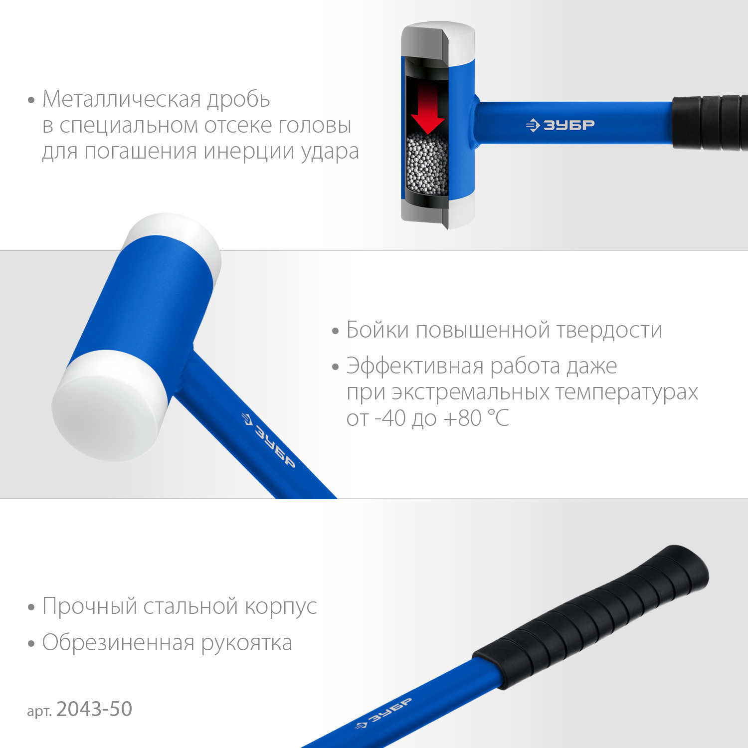 - -Инерция удара гасится благодаря применению специального металлического наполнителя,