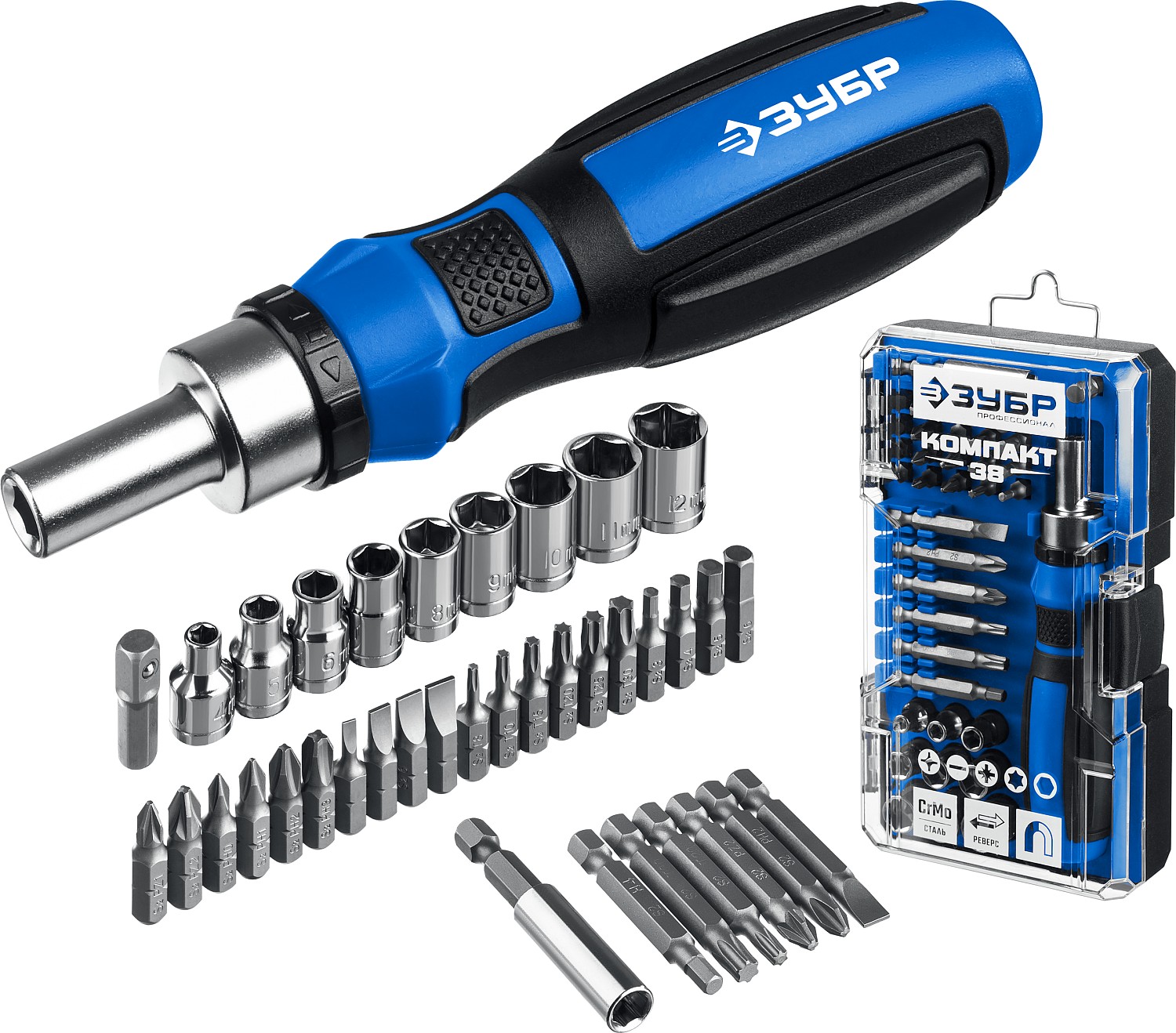 ОПИСАНИЕ ЗУБР Компакт-38, 38 предм., реверсивная