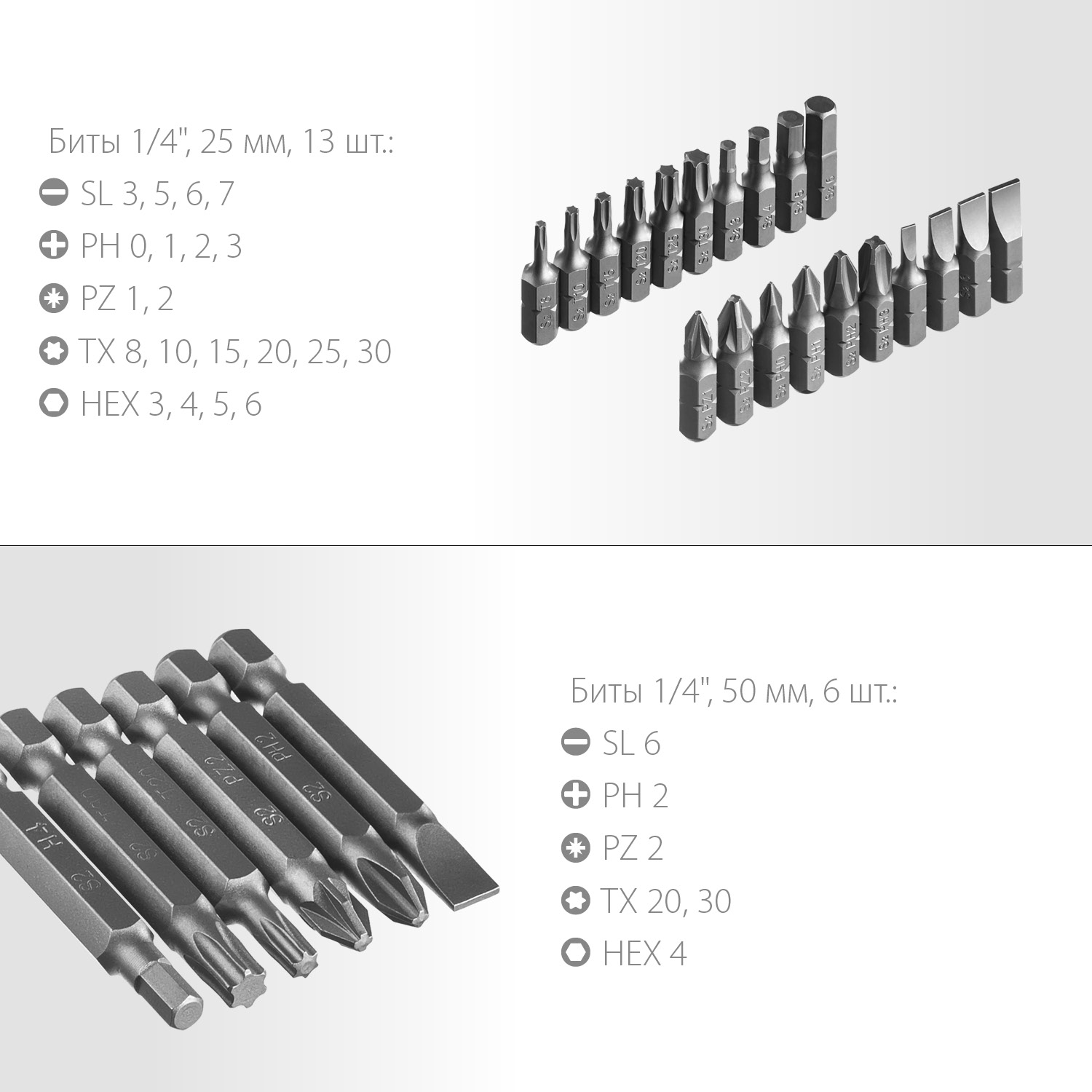 - Удлиненные биты 50 мм