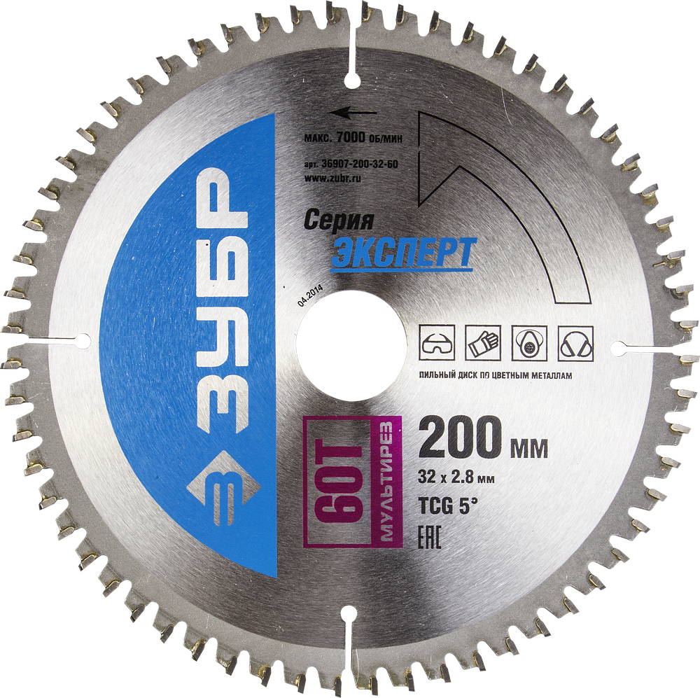 ТЕХНИЧЕСКИЕ ХАРАКТЕРИСТИКИ ЗУБР Мультирез, 200 x 32 мм, 60Т