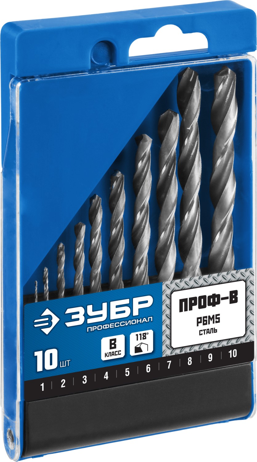 ТЕХНИЧЕСКИЕ ХАРАКТЕРИСТИКИ ЗУБР ПРОФ-В, 10 шт, (1-10 мм), сталь Р6М5, класс В