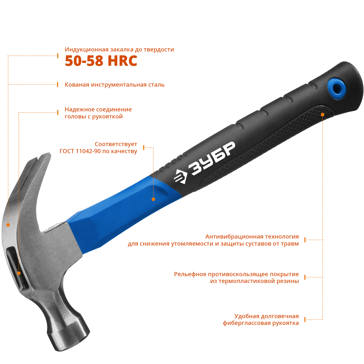 ТЕХНИЧЕСКИЕ ХАРАКТЕРИСТИКИ ЗУБР Профессионал 450 г столярный молоток-гвоздодёр