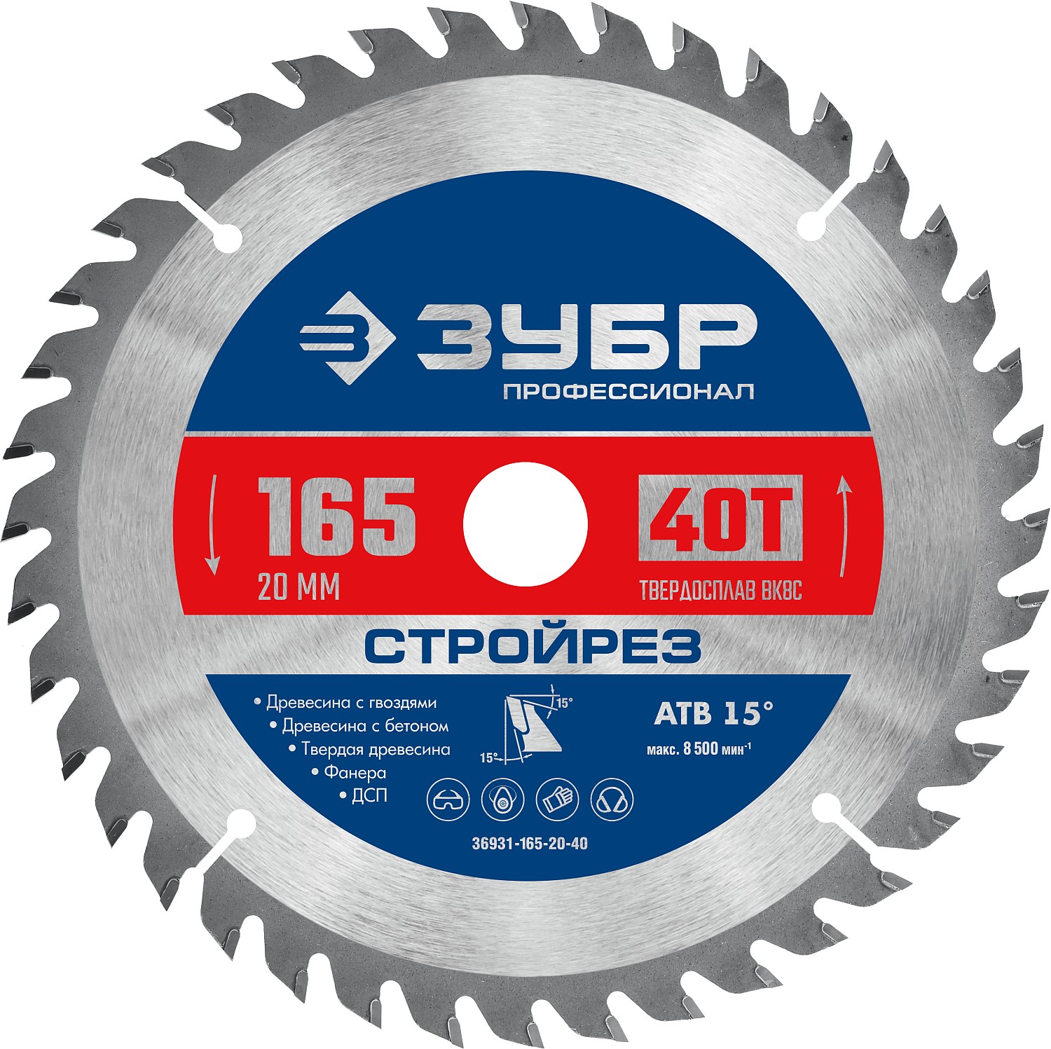 ТЕХНИЧЕСКИЕ ХАРАКТЕРИСТИКИ ЗУБР Стройрез, 165 х 20 мм, 40Т