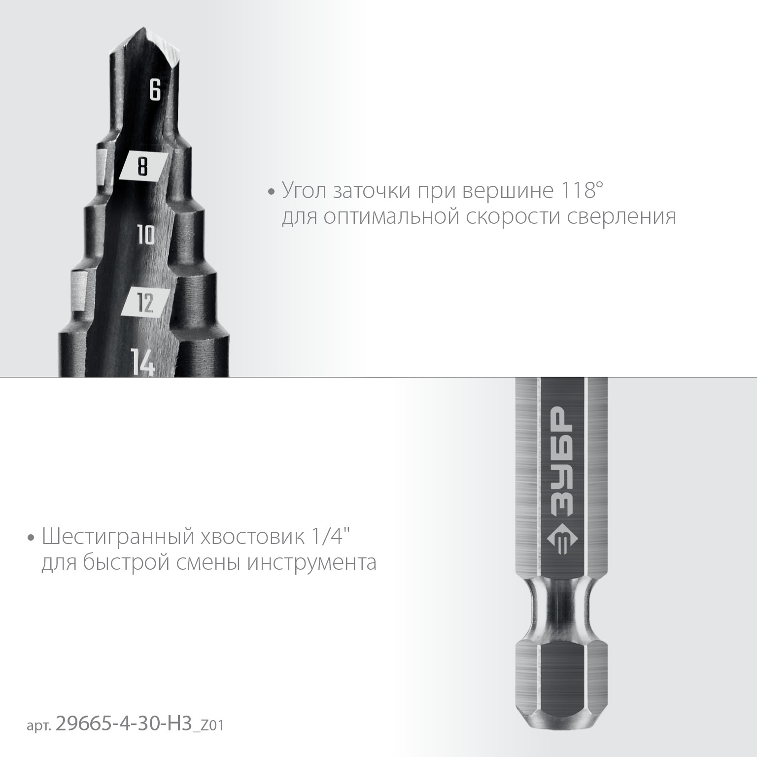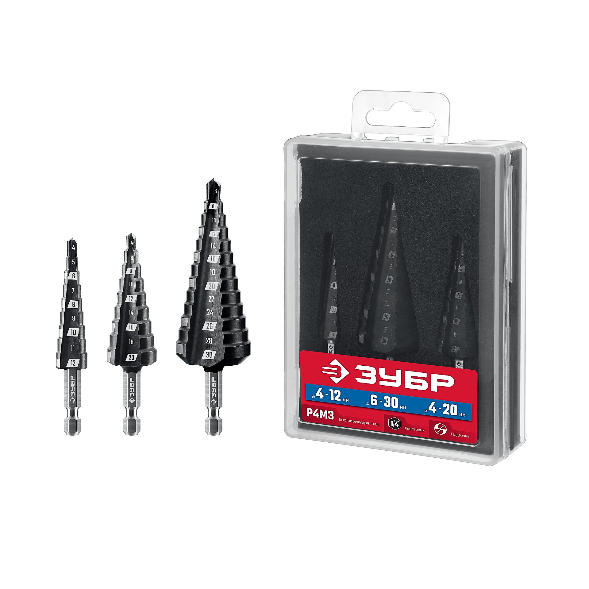 ТЕХНИЧЕСКИЕ ХАРАКТЕРИСТИКИ ЗУБР ступенчатых 3 шт., 4-30мм